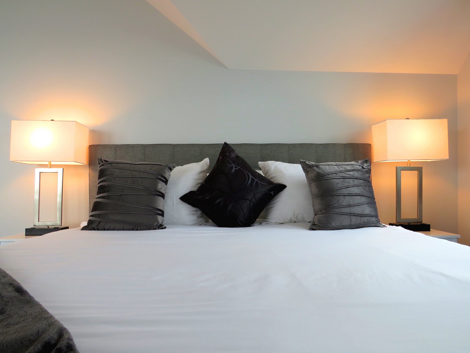 The Ocean Balcony Suite is painted dove grey and is fitted with brand new furnishings, chic bedding, pillow-top mattresses, plenty of pillows, a 50-inch Smart TV with live TV access, air conditioning, heat and environmentally-friendly, paraben free Essentiel Elements toiletries. Also unique to this room is an in-room mini fridge.